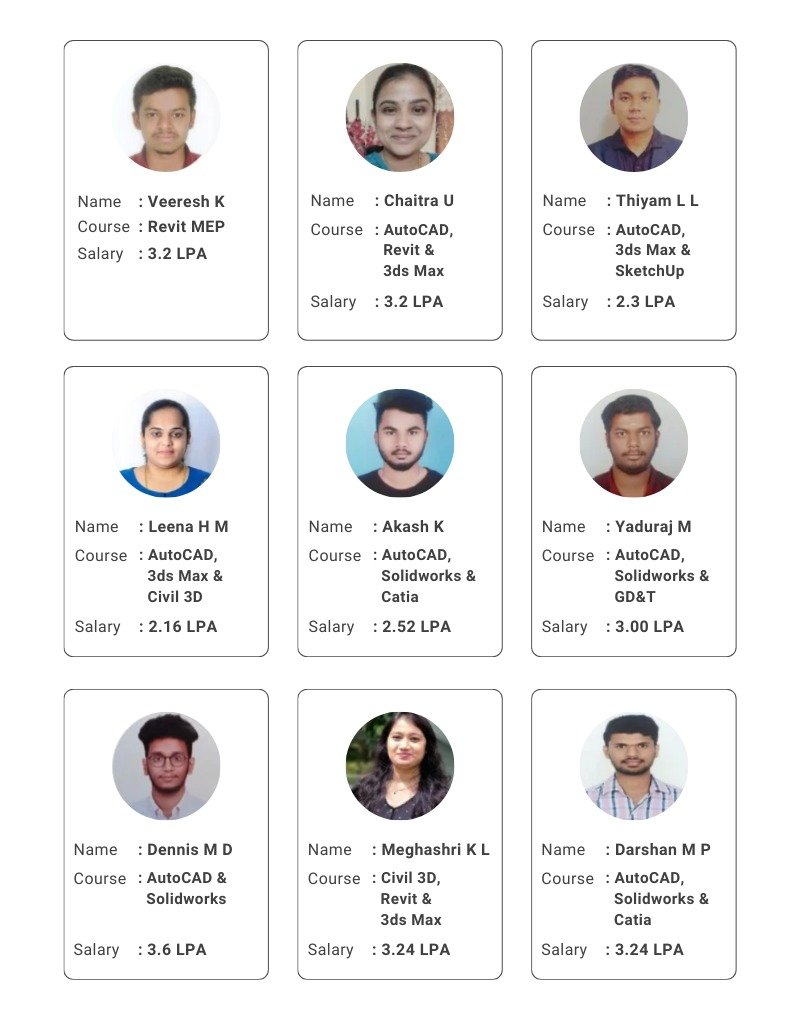 Our Bangalore center is renowned for its industry-focused curriculum, experienced faculty, and state-of-the-art facilities. We offer a wide range of courses tailored for beginners to advanced professionals in fields like mechanical engineering, civil engineering, architecture, and more. Whether you’re looking to enhance your skills or start a new career, CADD Centre Bangalore provides the training you need to succeed in the competitive job market.